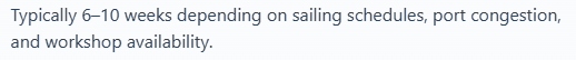 Shipping, insurance, customs clearance, and port logistics with transparent costs.