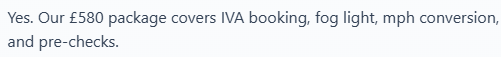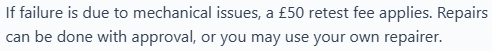 *Mechanical faults may incur additional repair costs. Retest fees: IVA/MOT £50 where applicable.*